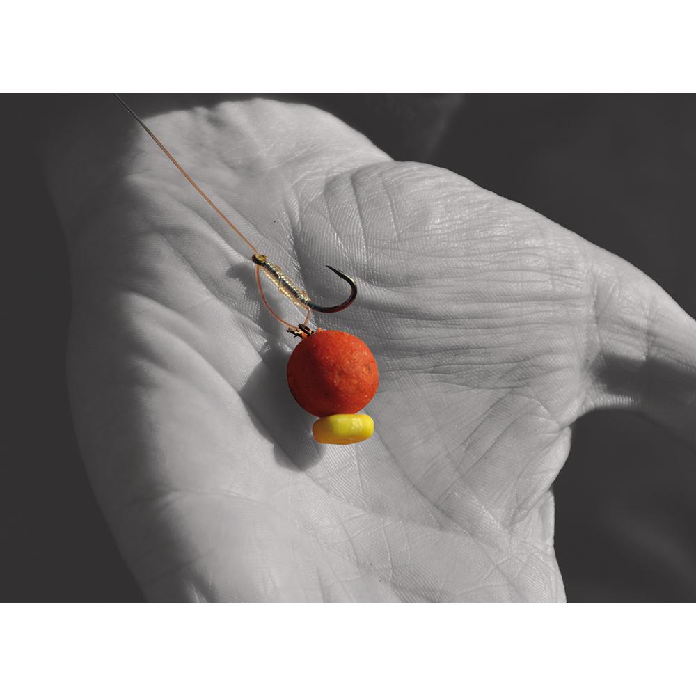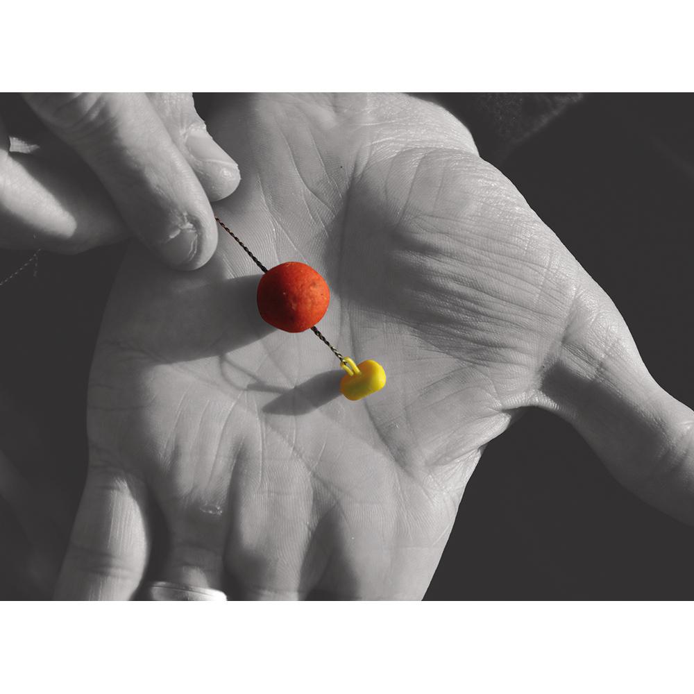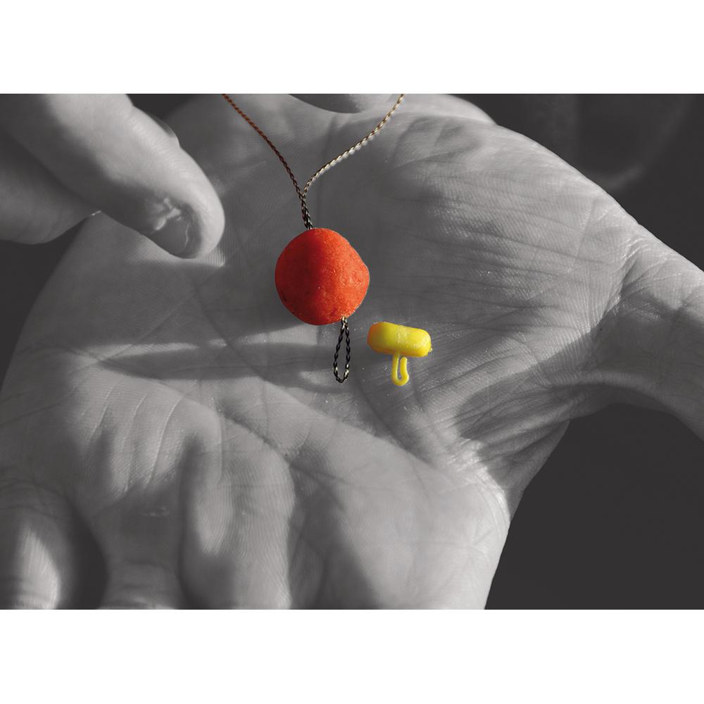 Stop appât flottant en forme de maïs avec 2 longueurs de crochet pour changer de diamètre de bouillette sans changer de longueur de cheveu.